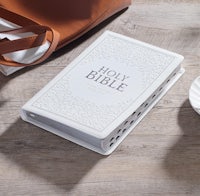 KJV Holy Bible, Thinline Large Print Faux Leather Red Letter Edition Thumb Index & Ribbon Marker, King James Version, White (KJV Thinline LP Editions)