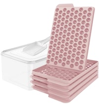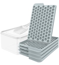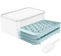 Round Ice Cube Tray with Lid & Bin Ice Ball Maker Mold for Freezer with Container Mini Circle Ice Cube Tray Making 66PCS Sphere Ice Chilling Cocktail Whiskey Tea Coffee 2 Trays 1 ice Bucket & Scoop