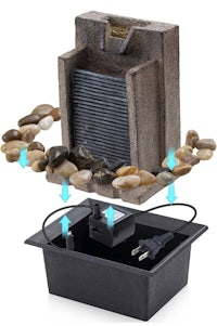 Waterfall Fountain Tabletop Fountain Office Tabletop Fountain Includes Many Natural River Rocks Decorated with Colorful Light 6.3" L x 5.12" W x 8.66" H